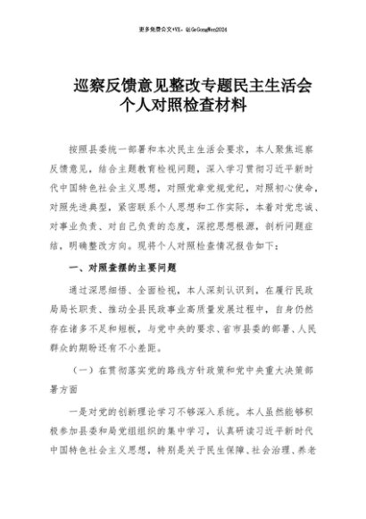 / 【七哥公文】2025年:巡察反馈意见整改专题民主生活会个人对照检查材料+更多免费公文+VX:QiGeGongWen2024
