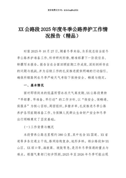 【七哥公文】2025年:XX公路段2025年度冬季公路养护工作情况报告(精品)+更多免费公文+VX:QiGeGongWen2024