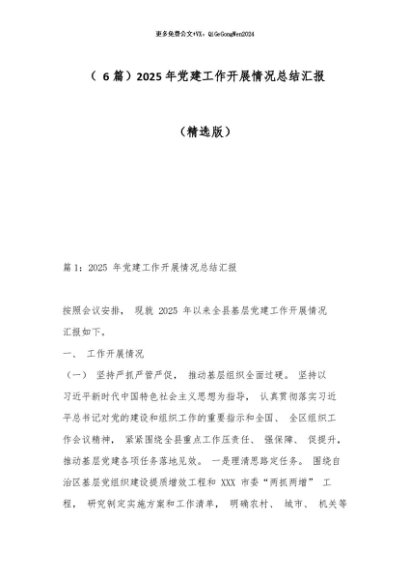 【七哥公文】2025年:( 6篇)2025年党建工作开展情况总结汇报(精选版)+更多免费公文+VX:QiGeGongWen2024