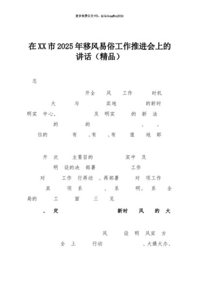 【七哥公文】2025年:在XX市2025年移风易俗工作推进会上的讲话(精品)+更多免费公文+VX:QiGeGongWen2024