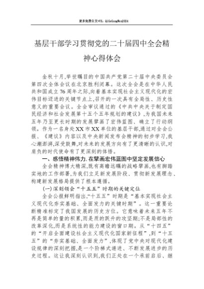 / 【七哥公文】2025年:基层干部学习贯彻党的二十届四中全会精神心得体会+更多免费公文+VX:QiGeGongWen2024