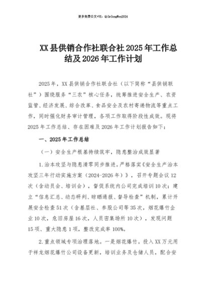 【七哥公文】2025年:XX县供销合作社联合社2025年工作总结及2026年工作计划+更多免费公文+VX:QiGeGongWen2024
