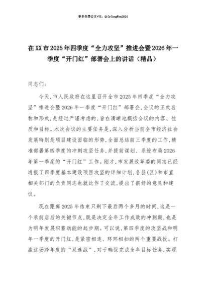 【七哥公文】2025年:在XX市2025年四季度“全力攻坚”推进会暨2026年一季度“开门红”部署会上的讲话(精品)+更多免费公文+VX:QiGeGongWen2024