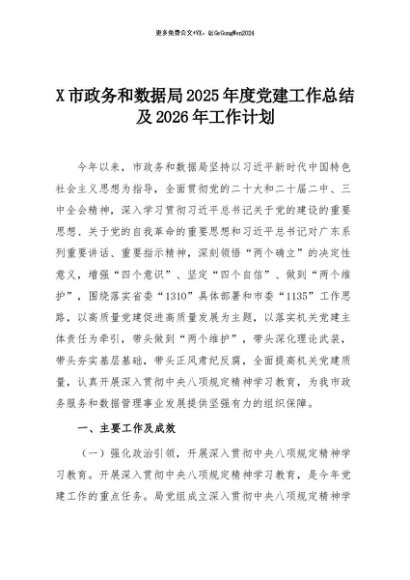 【七哥公文】2025年:X市政务和数据局2025年度党建工作总结及2026年工作计划+更多免费公文+VX:QiGeGongWen2024