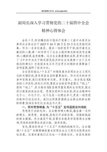 【七哥公文】2025年:副局长深入学习贯彻党的二十届四中全会精神心得体会+更多免费公文+VX:QiGeGongWen2024