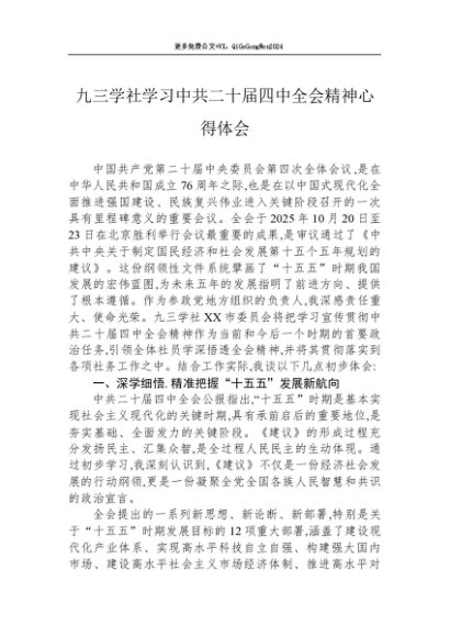 【七哥公文】2025年:九三学社学习中共二十届四中全会精神心得体会+更多免费公文+VX:QiGeGongWen2024