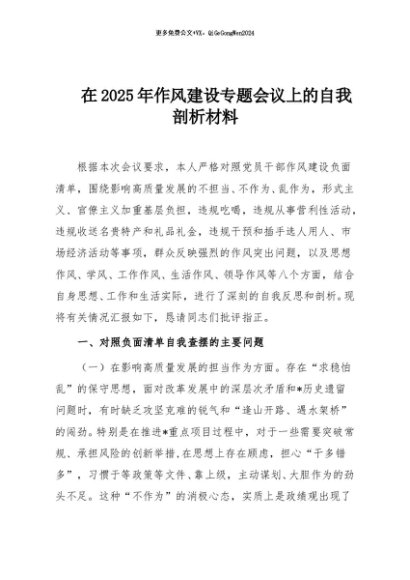 / 【七哥公文】2025年:在2025年作风建设专题会议上的自我剖析材料+更多免费公文+VX:QiGeGongWen2024