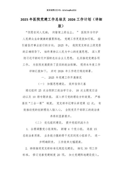 【七哥公文】2025年:2025 年医院党建工作总结及 2026 工作计划(详细版)+更多免费公文+VX:QiGeGongWen2024