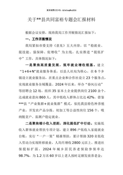 / 【七哥公文】2025年:关于XX县共同富裕专题会汇报材料+更多免费公文+VX:QiGeGongWen2024