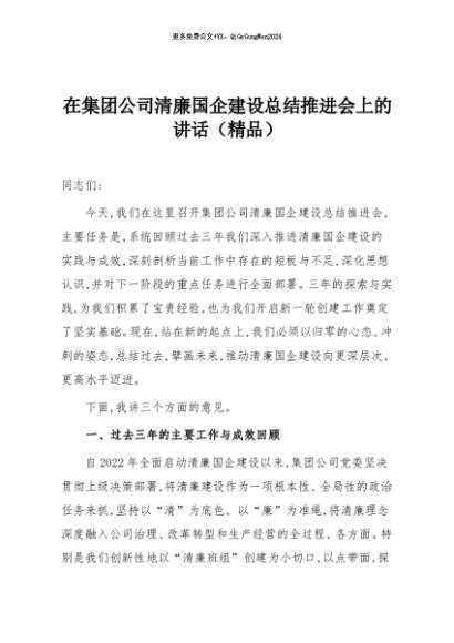 / 【七哥公文】2025年:在集团公司清廉国企建设总结推进会上的讲话(精品)+更多免费公文+VX:QiGeGongWen2024