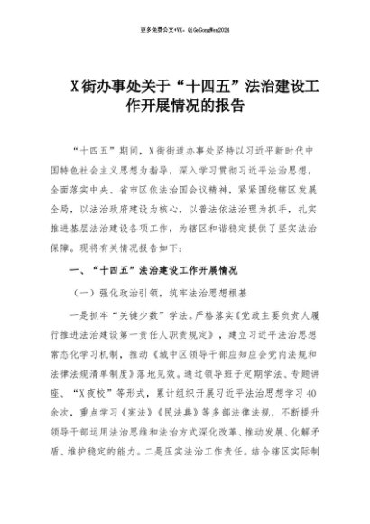 【七哥公文】2025年:X街办事处关于“十四五”法治建设工作开展情况的报告+更多免费公文+VX:QiGeGongWen2024