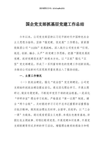 / 【七哥公文】2025年:国企党支部抓基层党建工作总结+更多免费公文+VX:QiGeGongWen2024