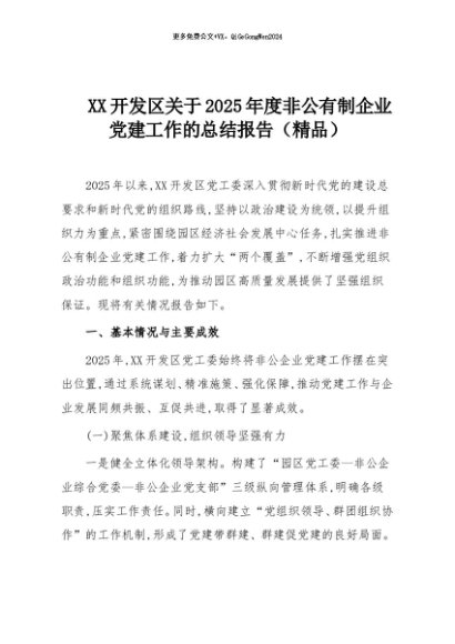 【七哥公文】2025年:XX开发区关于2025年度非公有制企业党建工作的总结报告(精品)+更多免费公文+VX:QiGeGongWen2024