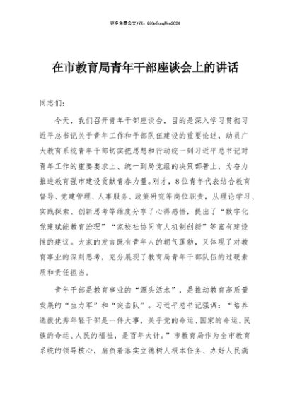 / 【七哥公文】2025年:在市教育局青年干部座谈会上的讲话+更多免费公文+VX:QiGeGongWen2024