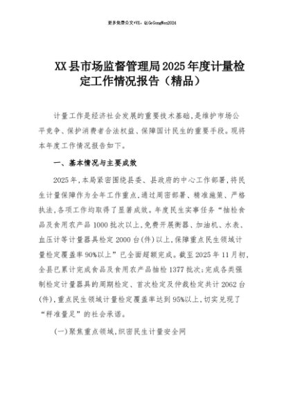 【七哥公文】2025年:XX县市场监督管理局2025年度计量检定工作情况报告(精品)+更多免费公文+VX:QiGeGongWen2024