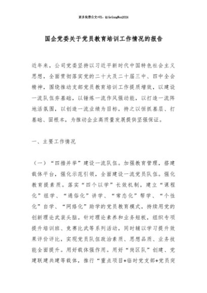 / 【七哥公文】2025年:国企党委关于党员教育培训工作情况的报告_副本+更多免费公文+VX:QiGeGongWen2024