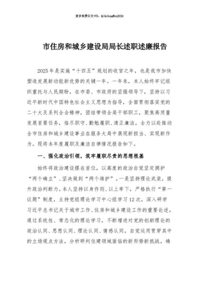 / 【七哥公文】2025年:市住房和城乡建设局局长述职述廉报告+更多免费公文+VX:QiGeGongWen2024