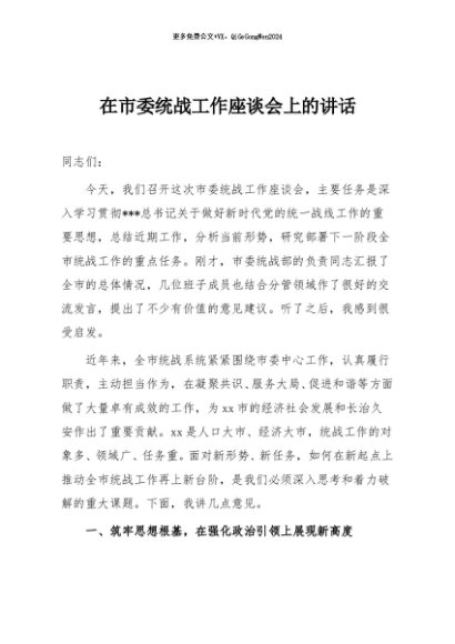 / 【七哥公文】2025年:在市委统战工作座谈会上的讲话+更多免费公文+VX:QiGeGongWen2024