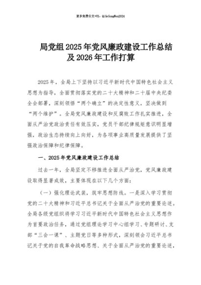 【七哥公文】2025年:局党组2025年党风廉政建设工作总结及2026年工作打算+更多免费公文+VX:QiGeGongWen2024