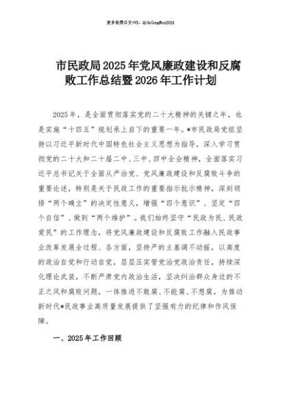 【七哥公文】2025年:市民政局2025年党风廉政建设和反腐败工作总结暨2026年工作计划+更多免费公文+VX:QiGeGongWen2024