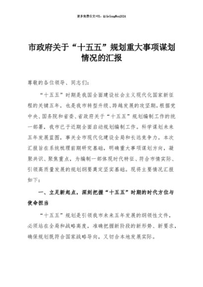/ 【七哥公文】2025年:市政府关于“十五五”规划重大事项谋划情况的汇报+更多免费公文+VX:QiGeGongWen2024