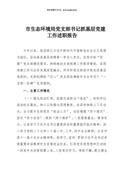 / 【七哥公文】2025年:市生态环境局党支部书记抓基层党建工作述职报告+更多免费公文+VX:QiGeGongWen2024