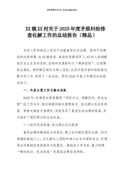 【七哥公文】2025年:XX镇XX村关于2025年度矛盾纠纷排查化解工作的总结报告(精品)+更多免费公文+VX:QiGeGongWen2024