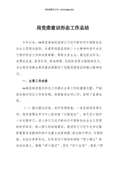 / 【七哥公文】2025年:局党委意识形态工作总结+更多免费公文+VX:QiGeGongWen2024