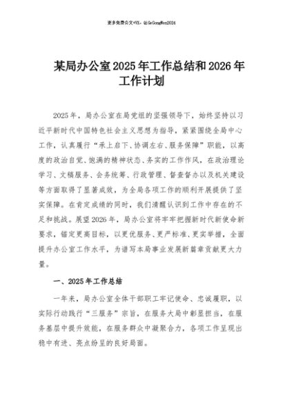 / 【七哥公文】2025年:某局办公室2025年工作总结和2026年工作计划+更多免费公文+VX:QiGeGongWen2024