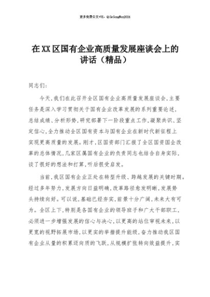 / 【七哥公文】2025年:在XX区国有企业高质量发展座谈会上的讲话(精品)+更多免费公文+VX:QiGeGongWen2024