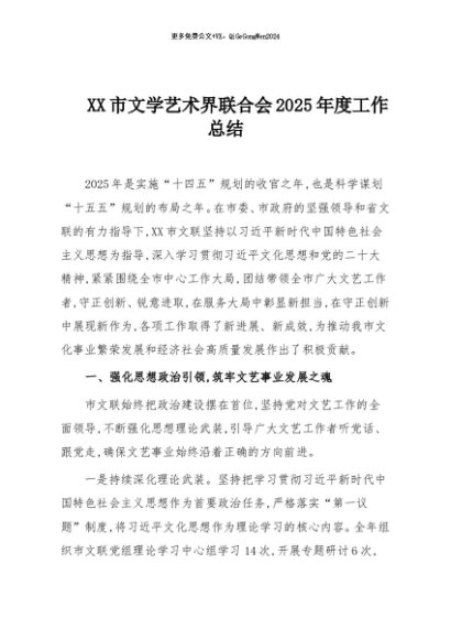 / 【七哥公文】2025年:XX市文学艺术界联合会2025年度工作总结+更多免费公文+VX:QiGeGongWen2024
