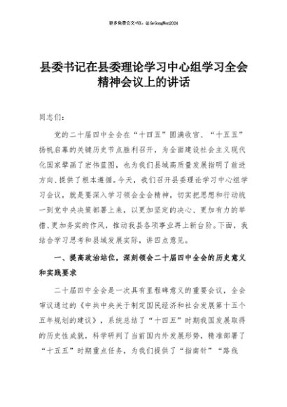 【七哥公文】2025年:县委书记在县委理论学习中心组学习全会精神会议上的讲话+更多免费公文+VX:QiGeGongWen2024