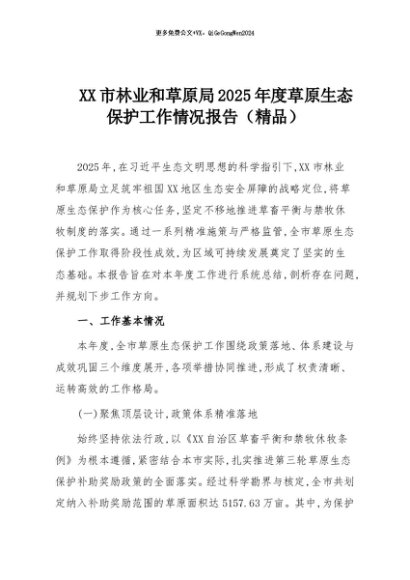 【七哥公文】2025年:XX市林业和草原局2025年度草原生态保护工作情况报告(精品)+更多免费公文+VX:QiGeGongWen2024