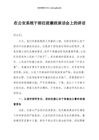 / 【七哥公文】2025年:在公安系统干部任前廉政谈话会上的讲话+更多免费公文+VX:QiGeGongWen2024