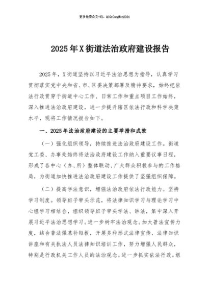 / 【七哥公文】2025年:2025年X街道法治政府建设报告+更多免费公文+VX:QiGeGongWen2024