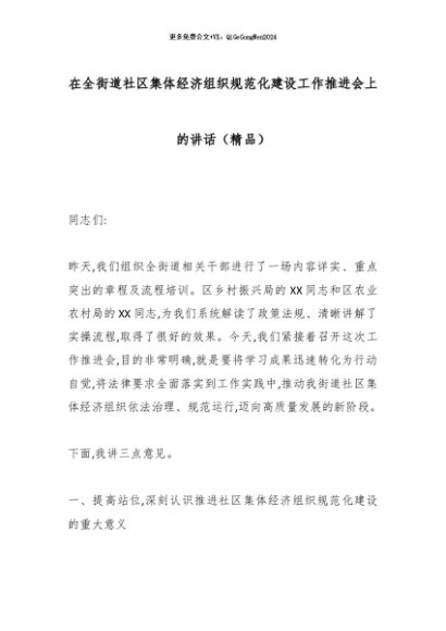 【七哥公文】2025年:在全街道社区集体经济组织规范化建设工作推进会上的讲话(精品)_副本+更多免费公文+VX:QiGeGongWen2024