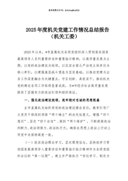 / 【七哥公文】2025年:2025年度机关党建工作情况总结报告(机关工委)+更多免费公文+VX:QiGeGongWen2024