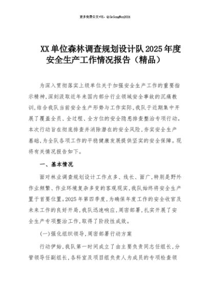【七哥公文】2025年:XX单位森林调查规划设计队2025年度安全生产工作情况报告(精品)+更多免费公文+VX:QiGeGongWen2024