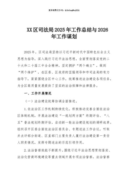/ 【七哥公文】2025年:XX区司法局2025年工作总结与2026年工作谋划+更多免费公文+VX:QiGeGongWen2024