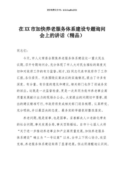 【七哥公文】2025年:在XX市加快养老服务体系建设专题询问会上的讲话(精品)+更多免费公文+VX:QiGeGongWen2024