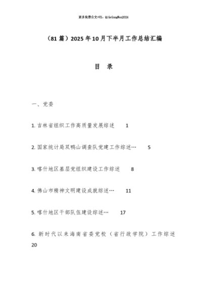 / 【七哥公文】2025年:(81篇)2025年10月下半月工作总结汇编+更多免费公文+VX:QiGeGongWen2024
