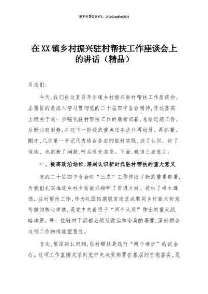 / 【七哥公文】2025年:在XX镇乡村振兴驻村帮扶工作座谈会上的讲话(精品)+更多免费公文+VX:QiGeGongWen2024