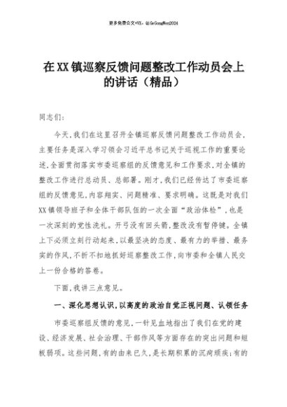/ 【七哥公文】2025年:在XX镇巡察反馈问题整改工作动员会上的讲话(精品)+更多免费公文+VX:QiGeGongWen2024