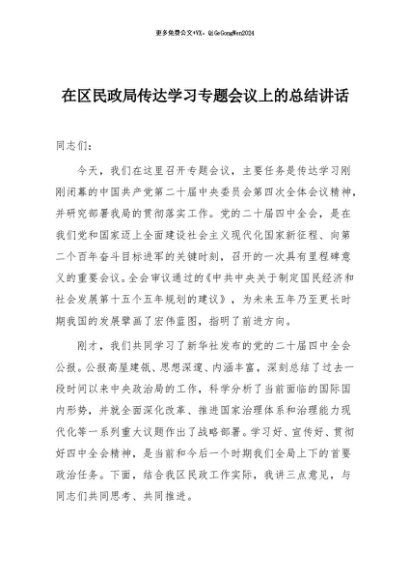 / 【七哥公文】2025年:在区民政局传达学习专题会议上的总结讲话+更多免费公文+VX:QiGeGongWen2024