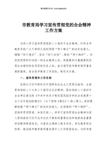 / 【七哥公文】2025年:市教育局学习宣传贯彻党的全会精神工作方案+更多免费公文+VX:QiGeGongWen2024