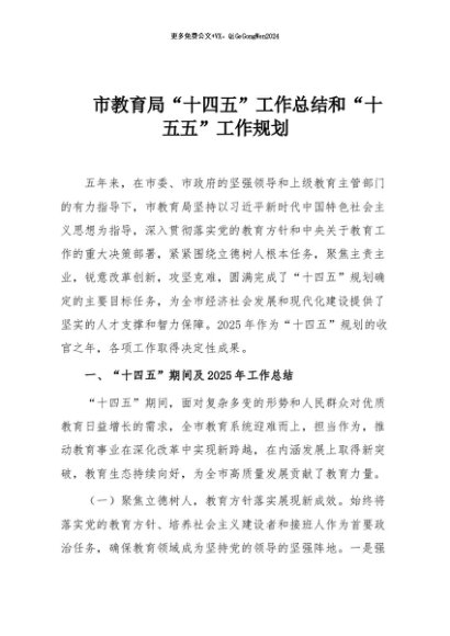 / 【七哥公文】2025年:市教育局“十四五”工作总结和“十五五”工作规划+更多免费公文+VX:QiGeGongWen2024