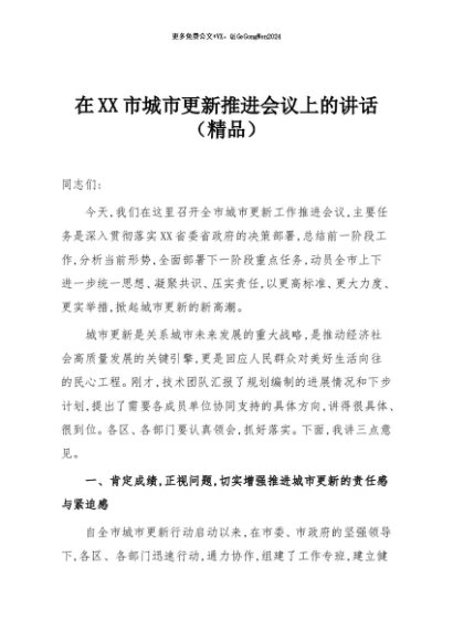 / 【七哥公文】2025年:在XX市城市更新推进会议上的讲话(精品)+更多免费公文+VX:QiGeGongWen2024