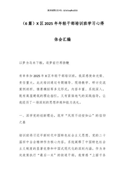 【七哥公文】2025年:(6篇)X区2025年年轻干部培训班学习心得体会汇编+更多免费公文+VX:QiGeGongWen2024