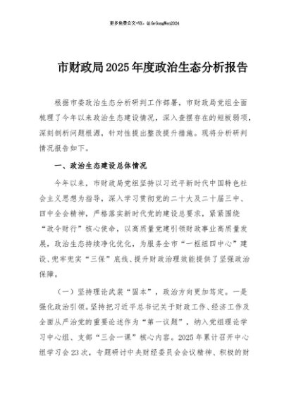 【七哥公文】2025年:市财政局2025年度政治生态分析报告+更多免费公文+VX:QiGeGongWen2024