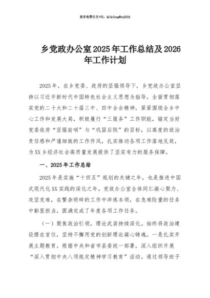/ 【七哥公文】2025年:乡党政办公室2025年工作总结及2026年工作计划+更多免费公文+VX:QiGeGongWen2024